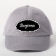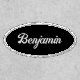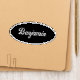 A white script is on this black patch. You can edit the text to show an employee's name or a custom message.