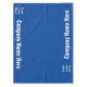 This deep blue and white tablecloth has a text template. There's display text for a company name (or a custom message) to appear twice on the tablecloth. A display image is also next to the text that you can replace with your logo.