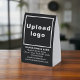 Black tent style paper table sign that you can customize by uploading your business logo, typing your business name, address, phone number, e-mail and website or social media page. Customize and display it on your desk as a marketing material to advertise your business or to promote your brand to customers or clients. Customizable office desk accessory that you can use to build brand name awareness. Please check the appearance after uploading logo and typing texts. If the appearance is pleasing to you, you can place your order now. If you need to resize or reposition the logo and texts, please adjust in the design tool. You can also change the font style, font color and background color in the design tool.