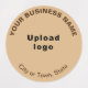 Light brown round adhesive label that you can customize by uploading your business logo, typing your business name, city or town and state. Customize it and use it as a packaging accessory to promote your brand or to advertise your business. Customizable label that you can use to build brand name awareness. Please check the appearance after uploading logo and typing text. If the appearance is pleasing to you, you can place your order now. If you need to resize or reposition the logo and text, please adjust in the design tool. You can also change the background color, font color and font style in the design tool.