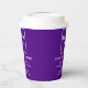 Paper cup that you can customize to put the name and some basic information of your cafe business. Customize it and use it like a marketing material to advertise your business or to promote your brand name. Build brand name awareness while your customers enjoy sipping the tasty and aromatic coffee that you served to them. Paper cup color is purple and font colors are pink and white. To customize this paper cup, upload your business logo, type your business or company name, address, phone number, e-mail and website or social media page. After uploading logo and typing texts, please check the appearance on front and back sides. If the appearance is pleasing to you, you can place your order now. If you need to resize and move the logo and texts to fit on this paper cup, please change in the design tool. You can also make other changes in the design tool according to the appearance of this paper cup that you prefer such as changing the cup color, font color and font style.