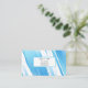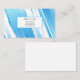 This business card is shown in a blue and white paint print.