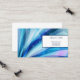 This business card is shown in the basic card stock with a modern abstract print in multi color blue tones with blue text.
