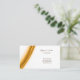 This business card is shown in a abstract pattern with brown text.