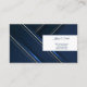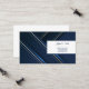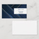 This business card is shown in the basic card stock with a modern abstract print in deep blue colors with blue text.