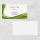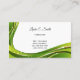 This business card is shown in the basic card stock with a modern abstract print in green with black text.