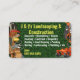 This card is a landscaping and construction business card for builders, contractors, landscapers and plumbing