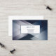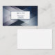 This business card is shown in the basic card stock with a modern abstract print in multi color tones of deep blue and grey with blue text.