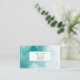 This business card is shown in a aqua teal color tones abstract pattern with black text.