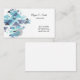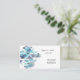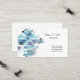 This business card is shown in a blue color abstract pattern with black text.