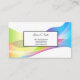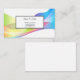 This business card is shown in the basic card stock with a modern abstract wave print in multi color tones with black text.