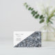 This business card is shown in a multi color blue, gray and white abstract pattern.