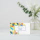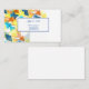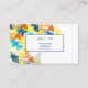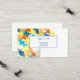 This business card is shown in the basic card stock with a modern abstract print in multi color tones with blue colored text.