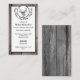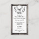 Cool stag or bachelor party ticket design features a black and white photograph of rustic wood planks background. There is a solid white rectangle with dark grey trim with customizable text in black font. At the top is a white circle with dark grey trim. In the center is a black and white pencil drawing of a buck/stag head. Around the circle is text that says Stag Party. Stag Party. Stag. Stag Party. The reverse side of the stag party ticket has the same black and white wood photograph. This is the perfect invitation for your stag and bachelor party.