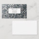 This business card is shown in a multi color blue, gray and white abstract pattern.