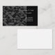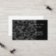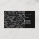 This business card is shown in a black and grey color tones abstract pattern with white text.