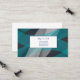 This business card is shown in a deep blue and teal multi color abstract pattern.