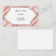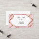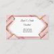 This business card is shown in a pink and gold color tones abstract pattern with black text.