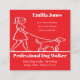 Front Design: The card features a simple, stylish line drawing of a person walking a dog, conveying a sense of trust and professionalism. All the text is fully customizable, including the name, contact information, and list of services—from daily dog walks to puppy visits.