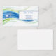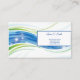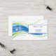 This business card is shown in the basic card stock with a modern abstract print in multi color blue and green tones with blue text.