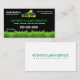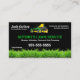 Lawn service business card. with a green and yellow zero turn lawnmower on it.