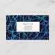 This business card is shown in a blue multi color abstract pattern.