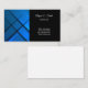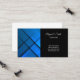 This business card is shown in the basic card stock with a modern abstract print in blue on a black background with white text.