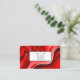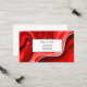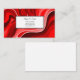 This business card is shown in a red tones abstract swirl pattern with black text.