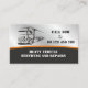 Heavy vehicle servicing and repairs business card. Auto services for heavy vehicle. Business card can be one-sided or double-sided. Editable business card. Customer can to customise and personalise card, to add or remove phones, names and other contact and information details.
