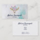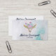 Business cards with a turquoise and pastel watercolor background. A boho chic animal skull with a floral bouquet upon its head and little butterflies fluttering about.