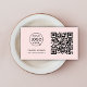 This blush pink QR code business card combines modern style with elegant simplicity. Personalize it easily in Zazzle’s design editor by adding your logo, QR code, and contact information to create a custom business card that reflects your brand. The soft pink layout gives a warm, contemporary look that suits entrepreneurs, consultants, designers, and business owners who want a feminine yet professional aesthetic. The scannable QR code connects instantly to your website, portfolio, or social media, making networking quick and effective. Printed on premium card stock, this personalized business card is ideal for client meetings, events, and brand promotions. Create a stylish and functional design that blends clean modern lines with a touch of sophistication for a card that leaves a lasting impression.