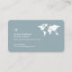 A modern and elegant idea to promote tourism professionals... Company logo, your name with custom travel related occupation (travel agent) and a small airplane... and address for contact, and profession related words at the back, with the image of a white map of the world... The background is a dusty blue, a light medium bright shade of sky blue. It belongs to the color family pastel sky blue.