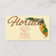 Though occasionally referred to as "The Peninsula State", Florida's official nickname is "The Sunshine State". It was adopted officially by the Florida legislature in 1970. It probably comes as no great surprise that the state flower of Florida is the Orange Blossom. Florida and oranges are almost synonymous, thanks to the abundant orange groves that produce so successfully in the tropical and subtropical climate for which the state is so famous. However, the name "Florida" is Spanish for "land of flowers" . . . again, courtesy of that fabulous Florida climate. Florida also has the distinction of being the only state to be bordered by both the Gulf of Mexico and the Atlantic Ocean. Florida became a state on March 3, 1845 and is our 27th state. While it is the 22nd most extensive, it is also the 3rd most populous. There are those that think the Florida state "bird" should be the "snowbird" . . . because of the vast number of Americans that reside in the north during summer, but winter in milder Florida. In spite of the obvious benefits of the location and climate, there are also downfalls . . . specifically, hurricanes -- the most recent of which (at this time) was the Category 4 storm in 2016, called "Matthew". In recent history, there was also the Category 5 disaster, Hurricane Andrew, 1992. But, in spite of the seasonal dangers, it's always "fun and sun" that attracts people to this magnificent state. It is said that every point in Florida is less than 60 miles from a beach. Whether it's a family vacation at Disney World or spring break in Fort Lauderdale, sunny, beautiful, amazing Florida is a state every American should visit at least once. This delightful design pays homage to our majestic 27th state, an outline of the state filled with iconic orange blossoms and oranges. These lovely, fully-customize-able business cards are an excellent choice for Florida Tour Guides, Florida Travel Agencies or any business associated with Florida tourism.