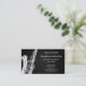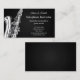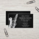 Business cards for saxophone players or instructors; black and white music design with silhouette of a saxophone; design is personalized with customizable text fields for adding your name, business, address and other informations