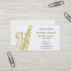 Business cards for saxophone players or instructors; white and golden music design with illustration of a saxophone; design is personalized with customizable text fields for adding your name, business, address and other informations