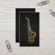 Illustrated business cards for saxophone players or instructors; black and golden music design with illustration of saxophone outline; design is personalized with customizable text fields for adding your name, business, address and other informations