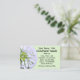 The zinnia plant, both flowers and leaves, were used by many southwestern tribes as medicinal and ritual herbs. Some have said that the Navajo tribe considers the zinnia one of the sacred life medicines. Still other, Pueblo, tribes are thought to believe the zinnia a symbol of wisdom. The zinnia, itself, is representative of lasting friendship, constancy and affection. The white zinnia, specifically, is symbolic of goodness and purity of heart. Until 1957, when it was replaced by the peony, the zinnia also had the distinction of being Indiana's State Flower. The beautiful bloom makes this a fabulous choice of designs for a business card. The bloom is featured on a pale, spring green backdrop. You may change the color of the background and, of course, will want to change the information on both the front and back of the card.