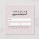 A beautiful way to book your customers next appointment with this professional pink business appointment card. Client appointment card can be personalized to your text, QR code, social media handle and business details.