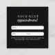 A beautiful way to book your customers next appointment with this professional black white business appointment card. Client appointment card can be personalized to your text, QR code, social media handle and business details.
