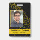 Black and gold business ID badge for professionals. Ideal for conferences or new employees and includes picture, individual's name and company name or job title. There is room for your logo in upper right corner if desired.