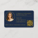 Business Consultant Navy Blue Gold Photo QR Code Card