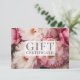This beautifully designed floral gift certificate exudes charm and sophistication, making it the perfect choice for businesses in the beauty, wellness, and hospitality industries. The front features a lush arrangement of roses and blooms in soft, romantic hues, while the back offers a clean, white, fully editable space for customization.