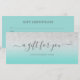 Simple and elegant script teal blue silver glitter ombre color block gift certificate. This elegant script Gift certificate fits perfectly within a standard #10 business envelope. Perfect for your brand and business.