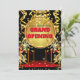 The perfect way to announce the grand opening of your new business with this illustration featuring a gold medal framing a black and red template set against a black background. The medal is bordered by vertical hanging faux gold streamers; faux sparkling sparklers; a red carpet with upright poles connected by red cord and luxurious glitter sequins. Make sure your first impressions are lasting ones with this invitation that is sure to delight customers and guests.