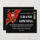 A wonderful illustration of a faux shiny red ribbon edged with gold that has a diamond inlay resting against a black background filled with faux dangling golden streamers and white templates for your personalized wording. The back has a black background on which a white template for additional details for new customers and guests appear which may be deleted if not required. These are ideal for any business having a soft launch or for companies who wish to let potential buyers know to "save the date" for their grand opening. These luxurious and elegant flat cards will delight your guests.