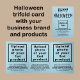 Horror, scary, spooky, creepy, ghost, monster, skull, pumpkin and so on. Happy Halloween! Holiday to scare but not to scare customers or clients. Holiday to celebrate this October and to advertise also your business. Trifold card with Halloween greeting that you can customize to put your business name, products or services and other information of your business. Trifold card as brochure for your business. You can put up to three products or services. Customize it and use it to greet your customers or clients this Halloween and as a marketing material to advertise your business and to promote your products or services. Design colors are black and dark blue texts on light blue background. To customize this trifold card, upload your business logo and images of your products or services. Type also your business name, address, phone number, e-mail, website or your business social media page and short attractive description of your products or services. Please check the appearance on all sides after uploading images and typing texts. If the appearance is pleasing to you, you can place your order now. If you need to resize and move the images and texts to fit on this trifold card, please change in the design tool. You can also change the background color, font color and font style in the design tool. Advertise your business. Promote your brand name. Customizable trifold card that you can use to build brand name awareness. Happy Halloween! Wishing you more sales this holiday season.