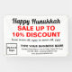 Happy Hanukkah! Wishing you joy, peace and blessing this festival of lights. Holiday to celebrate this December and to advertise also your business. Customizable rectangle banner with Hanukkah Sale, your business name and other information. Banner that you can use as marketing material to attract more customers. Customize it and display it to convince more customers to buy your products or clients to like your services. Design colors are black and red texts on white background. Contents are Happy Hanukkah greeting, sale texts with percent discount that you will offer, sale dates, your business name, logo, address, phone number, e-mail and website or your business social media page. Please check the appearance after uploading logo and typing texts. If the appearance is pleasing to you, you can place your order now. If you need to resize and move the logo and texts to fit on this banner or on the size that you will choose, please change in the design tool. You can also change the background color, font color and font style in the design tool. Happy Hanukkah! Wishing you more sales this holiday.