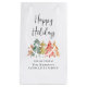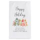 Elegant corporate Christmas gift bag for your business customers, clients and employees featuring a modern watercolor of sage green, red, gold and terracotta pine trees, "Happy Holidays" in a stylish script and your company name in simple typography.