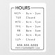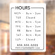 Enhance your business presence and provide essential information with our "White Business Hours Custom Store Window Personalized Window Cling." These window decals are designed to help your storefront stand out and convey your business hours clearly.