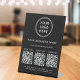 Modern and professional black table top pedestal sign for your business. Upload your logo and 3 QR codes for customers to scan for payment, information, a list of your products, services, prices, etc. Label your QR codes and add your name, phone number, street address, website or other information in simple white typography.